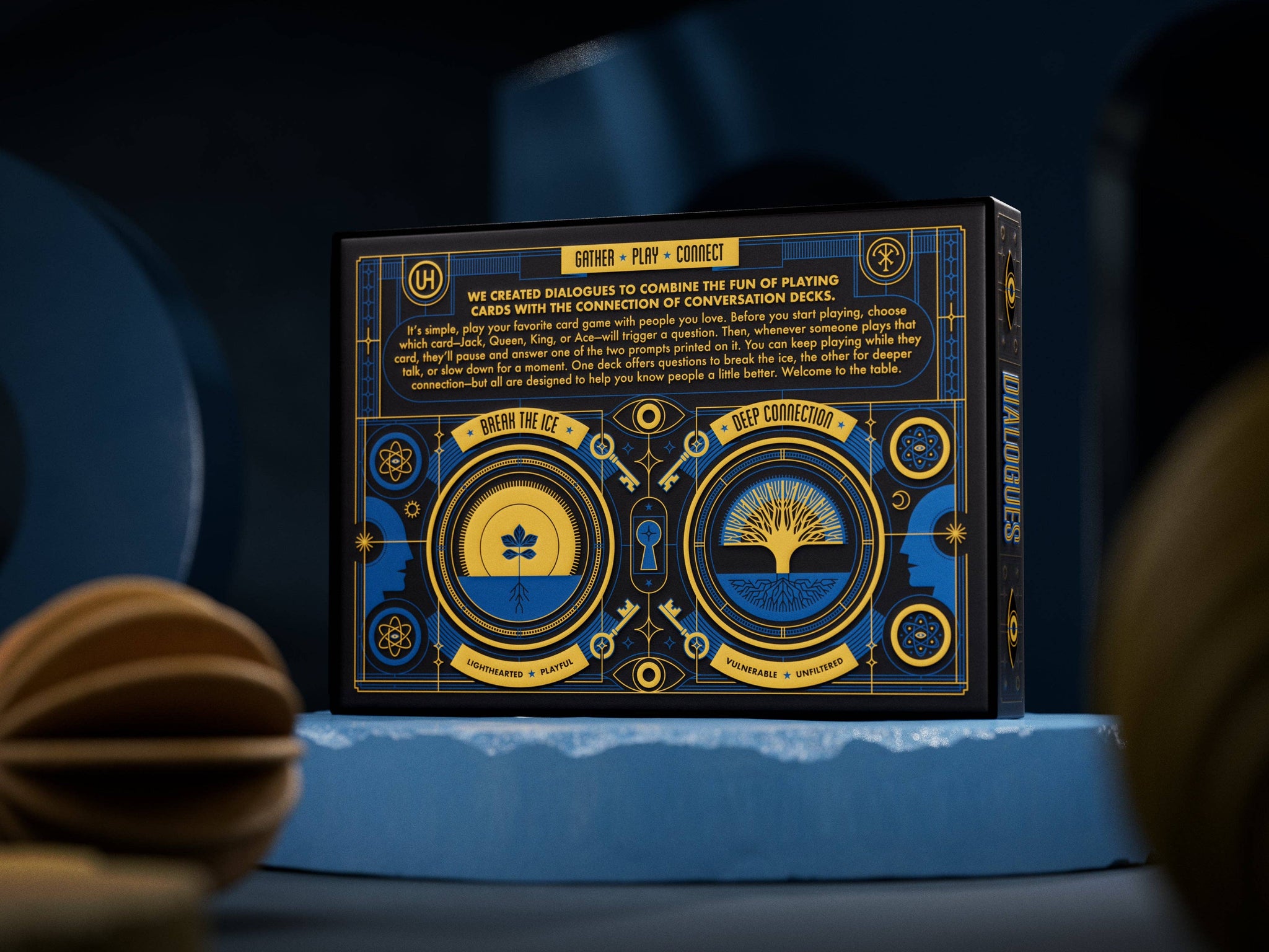 Dialogues combines the fun and tradition of playing cards with the depth and connection of conversation decks. Each set includes TWO decks: one with lighthearted ice-breakers, and one deck for deeper connections. Dialogues make the games you already love playing more meaningful and more human.