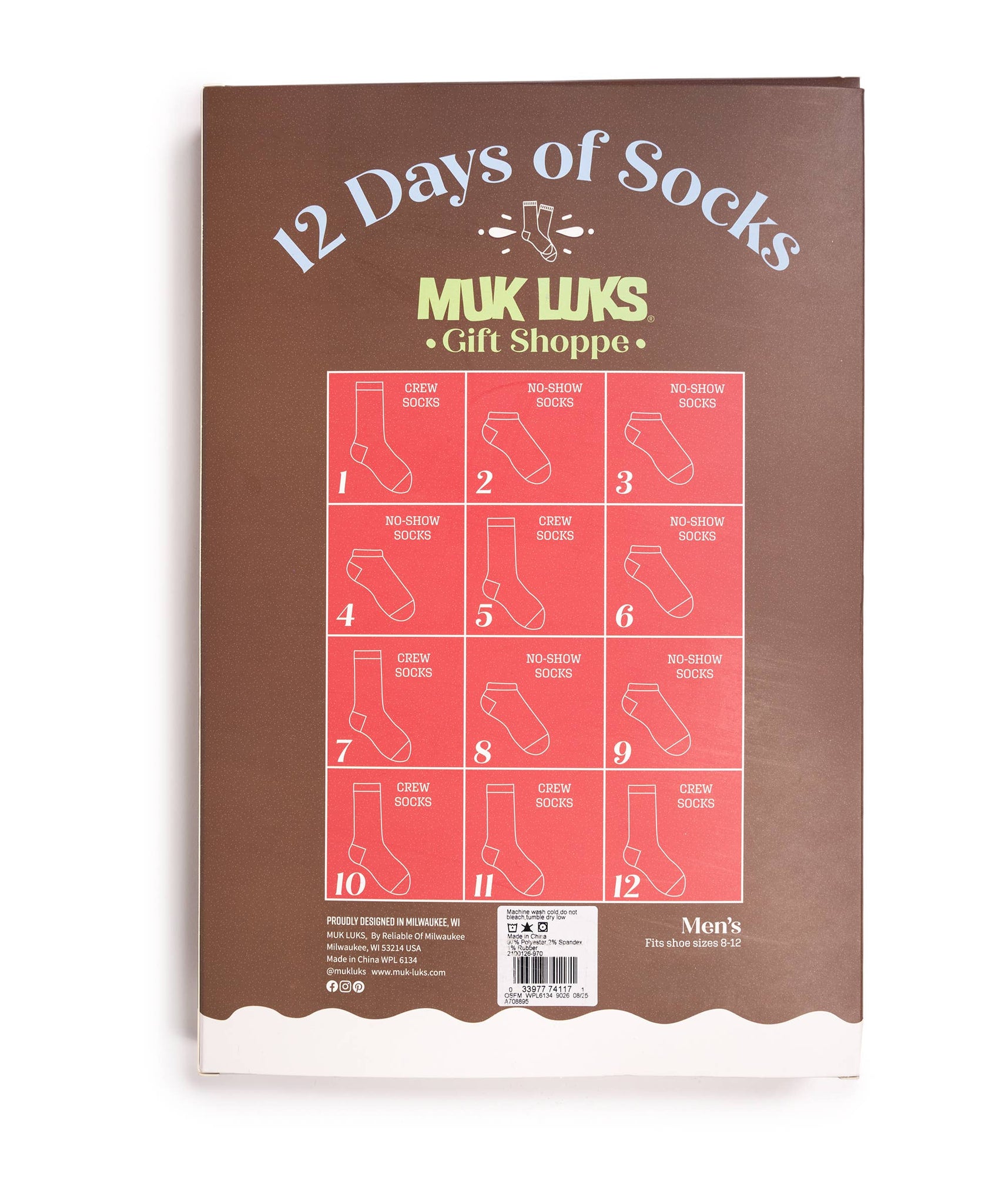 Gift yourself or the best men in your life 12 pairs of MUK LUKS cozy socks for the holidays. This assortment includes 6 pairs of crew socks and 6 pairs of no-show socks, all in fun and festive patterns. * 12 Pair Pack * Crew and No Show Socks * Holiday Theme * Multi Designs * One Size (Fits Shoe Sizes 8-12)
