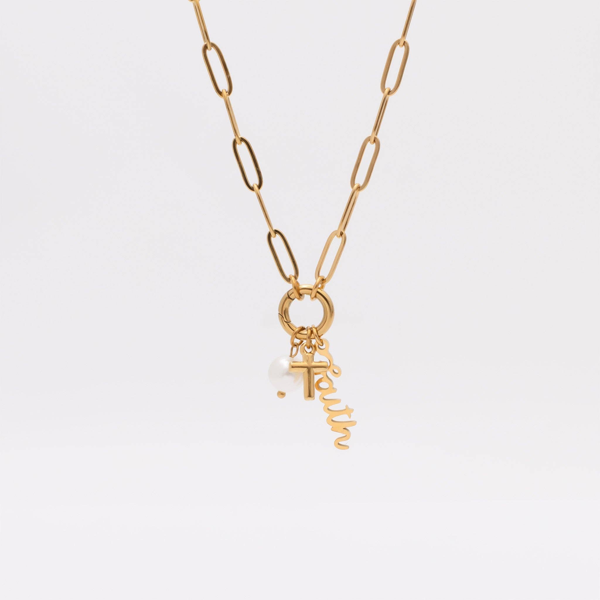 Gold Stainless Steel Faith Charm Holder Necklace Gift Set