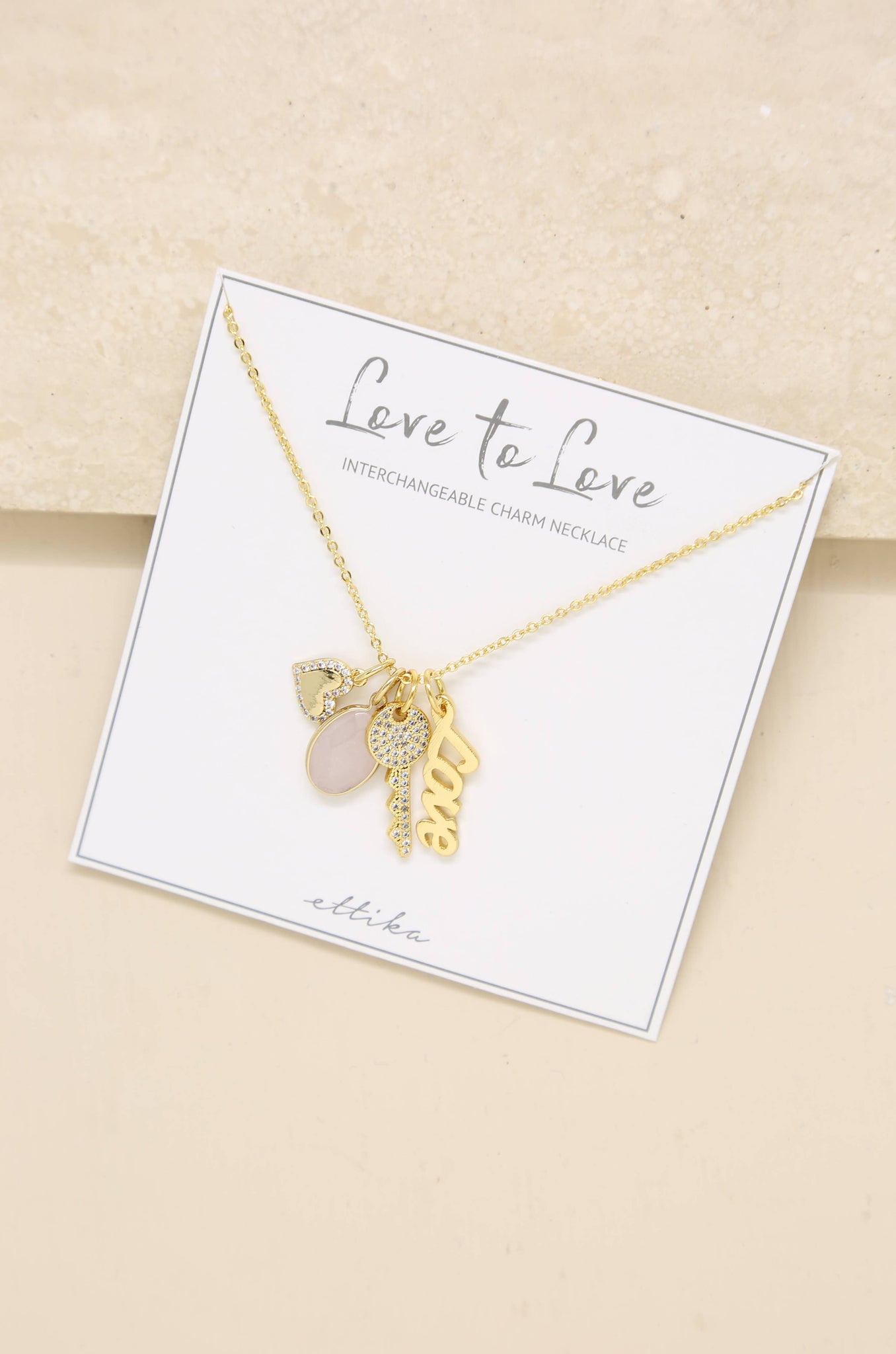 Ettika presents the Love to Love Interchangeable Charm Necklace. This is not just a piece of jewelry, but a celebration of womanhood and empowerment.