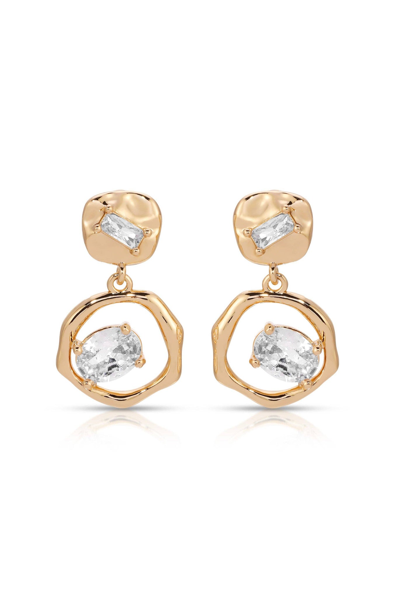 The Organic Shape Crystal Earrings showcase dazzling crystals set in fluid, 18k gold-plated designs, echoing natural forms.